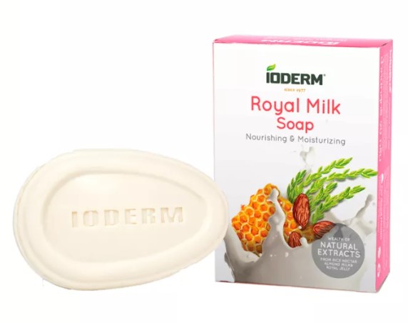 IODERM’s Natural Essence Soap is made from the finest grade of coconut wax, which is abundant in natural glycerin. This soap gently and deeply cleanses your skin without leaving any residue, while also preserving your skin’s moisture and balance. It incorporates all the qualities of natural essential oils, which are widely known for their fragrant, nourishing, and long-lasting freshness. Our unique soap variations, ranging from olive oil soap to milk soap, cater to improving your skin, regardless of its type.